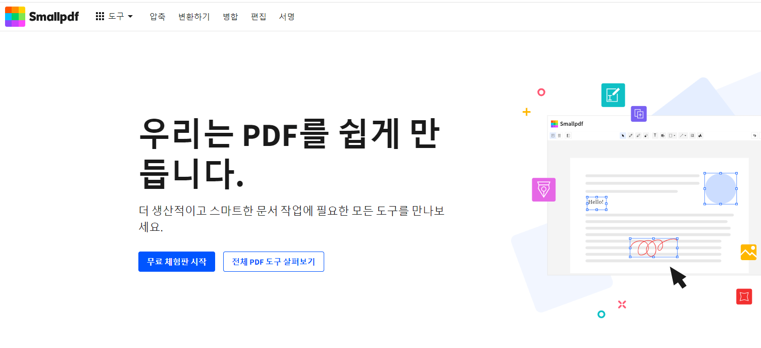 - 다양한 기능: PDF 변환 외에도 병합, 분할, 압축 등의 다양한 기능을 제공.