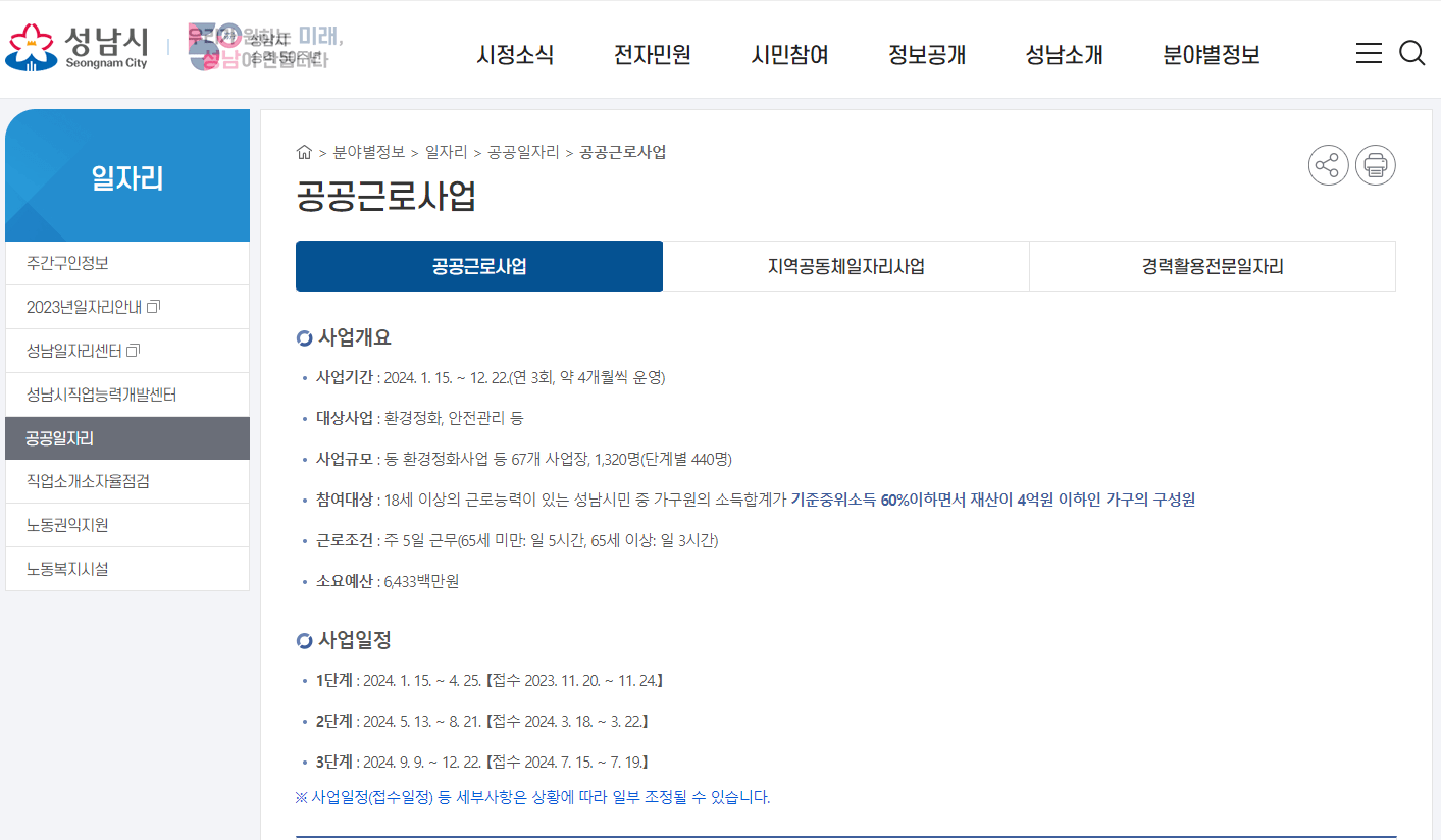 성남시 공공근로