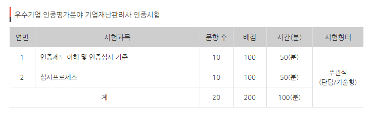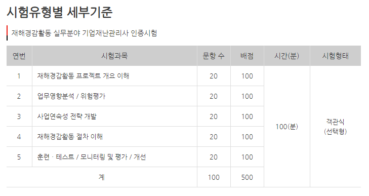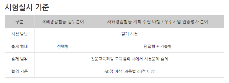 2. 기업재난관리사 자격증 시험과목 및 합격기준