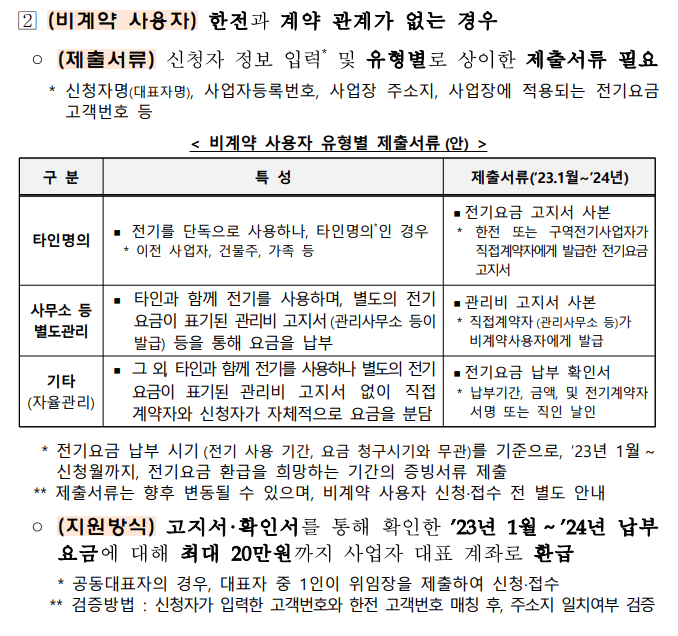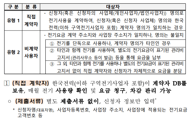 2) 사업장용 전기요금(주거용 등 제외)을 부담하는 개인사업자, 법인사업자이어야 합니다.