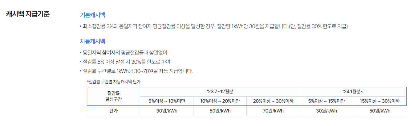 한전에너지캐시백 산정방법