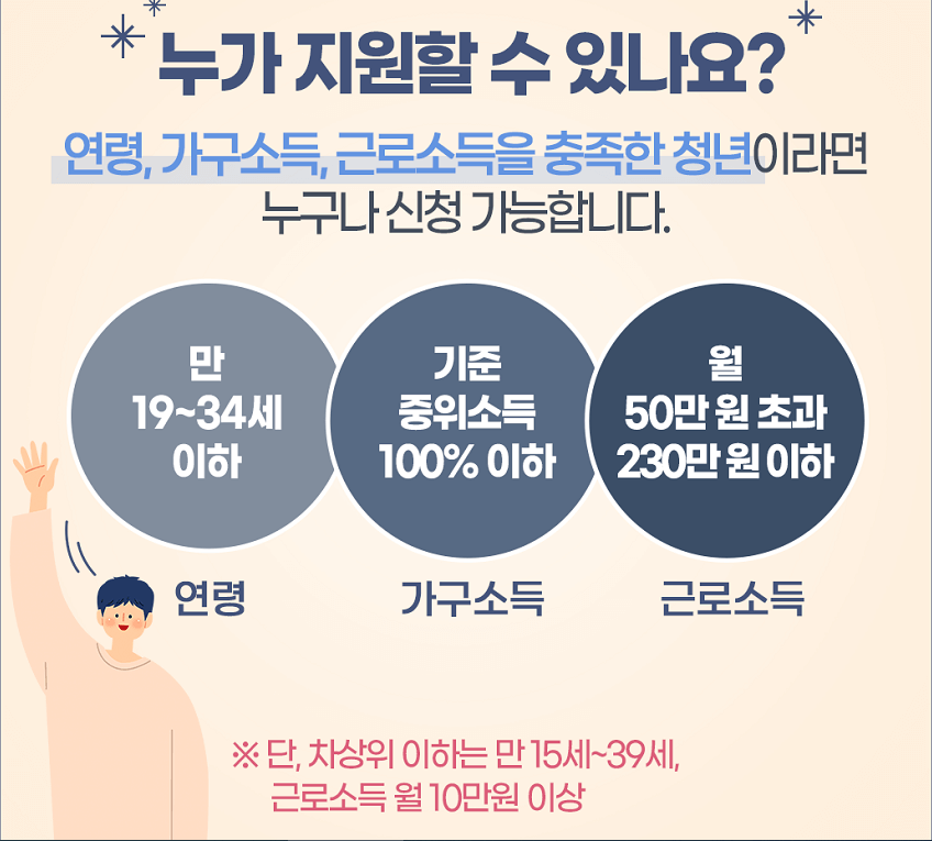 1. 가입연령 : 신청 당시 19∼34세 이하 (단, 수급자·차상위자는 만15∼39세 이하)